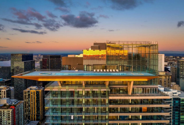 First Light晨曦豪宅公寓的玻璃幕墙在晨曦中闪烁着微光,与太空针塔的轮廓交相辉映。46层的天际泳池中,投资者俯瞰着西雅图的城市全景与远山,正如这座城市的未来——广阔无垠。